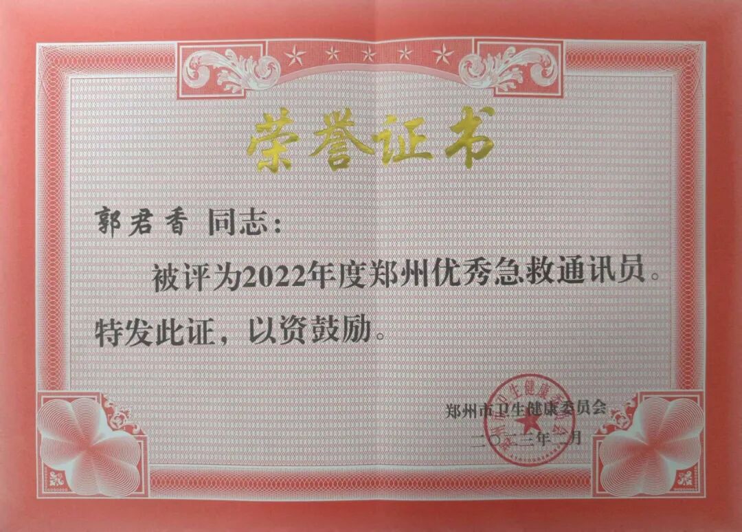 喜报传来!郭君香被评为“郑州优秀急救通讯员”,殷连跃、魏蒙被评为“2022年郑州先进急救工作者”